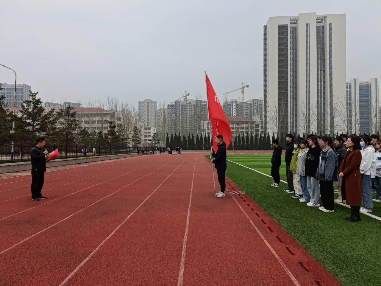活动伊始,学院党总支副书记王明印致辞,他指出,健步走活动既是一项人人能参与、覆盖范围广的集体健身项目,也是贯彻党的教育方针、落实“健康第一”指导思想的具体行动。学院师生要发扬“胸怀大局、自信开放、迎难而上、追求卓越、共创未来” 的精神,激发青春热情,在体育锻炼中享受乐趣、增强体质、健全人格、锤炼意志,在青春的赛道上奋力奔跑。随后,健步走活动正式开始,同学们精神抖擞,兴致勃勃,在暖阳下迈开步伐,迎着明媚的阳光,兴致盎然地漫步在熟悉的操场中,矫健的步伐与校园四月的花海相映成趣,形成了一道靓丽的风景线。最终全体同学到达终点完成全程5公里的健步走。