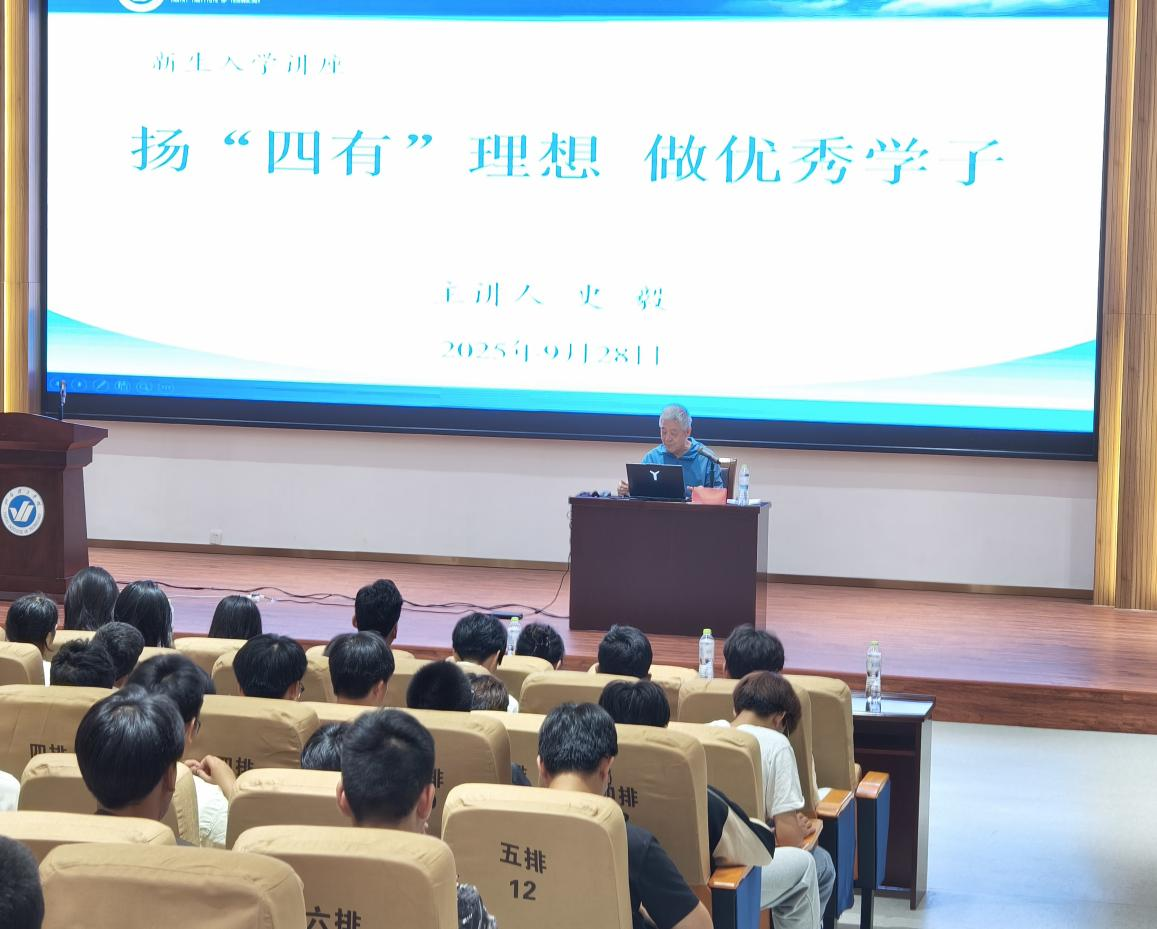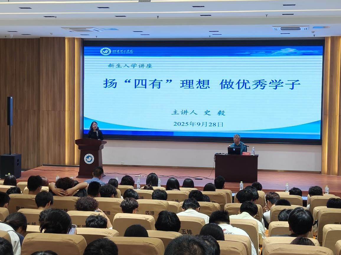 为引导2025级新生树立远大理想、明确学业发展方向,9月28日下午,我院于综合楼六楼学术报告厅开展“扬‘四有’理想,做优秀学子”入学教育讲座。史毅老师担任主讲,学院党总支副书记王明印、全体辅导员以及2025级新生参加。讲座由团总支书记祝箐主持。