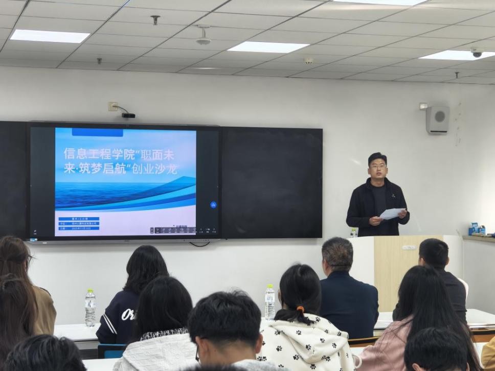 为帮助学生拨开职业与创业迷雾,汲取实战经验,明晰成长方向,11月13日,BBIN游戏于综合楼s203举办“职面未来,筑梦启航”创业沙龙分享会。此次会议由辅导员于东主持,特邀学校2019级优秀校友、常州计蒙科技总经理董辉担任主讲,学院党总支副书记王明印、团总支书记祝箐及2025级学生参加。