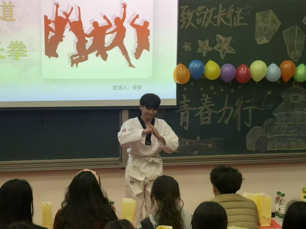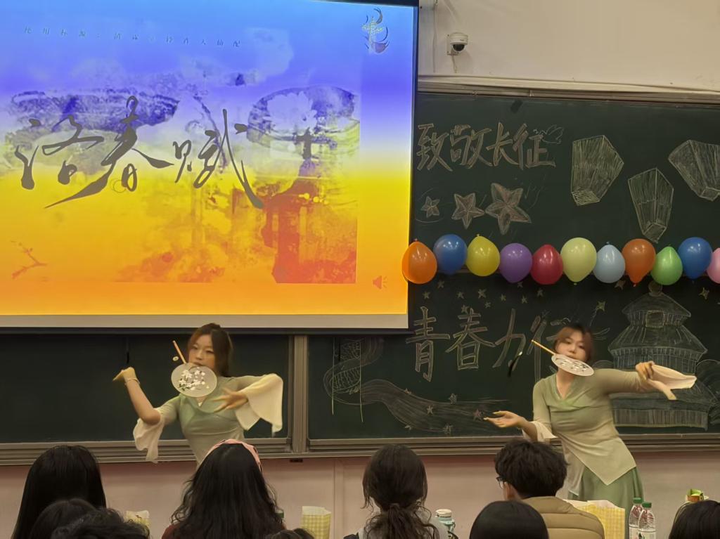 活动开场,主持人以深情回望长征岁月的致辞拉开帷幕,多元节目随即让红色精神在青春演绎中焕发光彩。朗诵《青春 在奋斗中绽放》以铿锵语调叩响青春与初心的共鸣,双人合唱《老男孩》借经典旋律传递初心坚守。紧接着,《洛阳赋》古典舞的舒展舞姿、《白马》蒙古舞的灵动韵律,与《初级长拳》的飒爽招式交织,展现出青春的多元风貌。互动环节“看图猜成语”聚焦长征相关典故,同学们踊跃抢答,在趣味比拼中加深了对红色历史的记忆,现场笑声与掌声交织,让红色精神在互动中自然传递。随后,《成都》《苦茶子》《一点》等歌曲演唱接连上演,或舒缓温情,或热血洒脱,或活力满满,为现场观众带来了全方位的视听享受。最后,笛子独奏《塔塔尔族舞曲》婉转悠扬,朗诵《团徽映青春 初心映征程》铿锵有力,进一步锚定了青年传承长征精神的坚定信念。