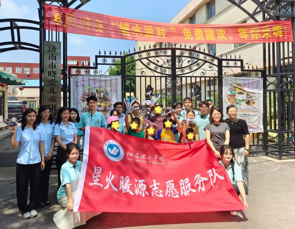 2025 年暑假,“星火暖源”志愿服务队以济南晓爱儿童康复中心为实践阵地,开展了为期 7 天的志愿服务。学子们充分发挥专业特长,创新开设无人机科普、飞机模型组装等特色课程,助力孩子们提升动手能力与专注力;同时通过丰富的互动体验活动,引导孤独症儿童主动迈出沟通步伐,成功搭建起心灵桥梁。团队还联合校企合作单位济南安兴电气科技有限公司捐赠爱心物资,为康复中心提供了切实支持。