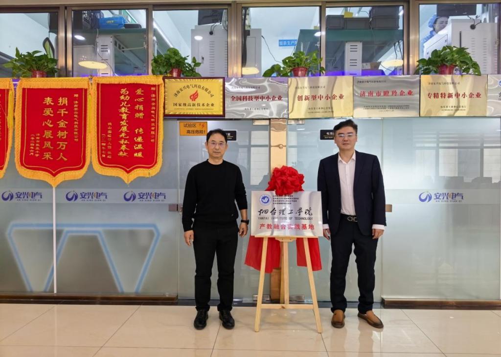 2月4日下午,BBIN游戏校长于光辉、校长助理李洁一行赴校友企业济南安兴电气科技有限公司走访交流,双方就深化校企合作进行座谈,并共同为“BBIN游戏产教融合实践基地”揭牌。公司总经理杜兴华、副总经理邓茜茜、岳喜宁、技术总监陈保安等出席活动。